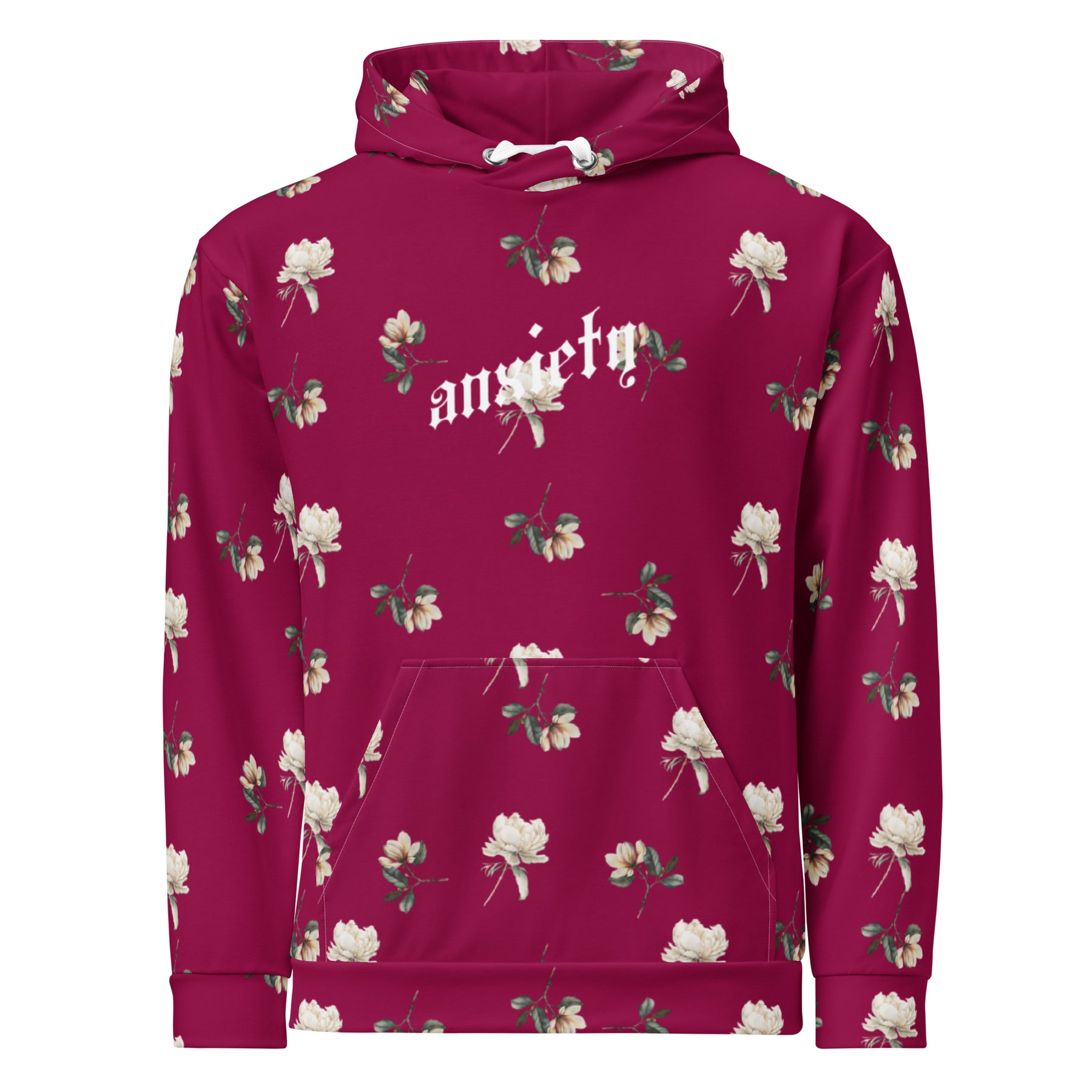 [ANXIETY] Floral Unisex Hoodie Burgundy