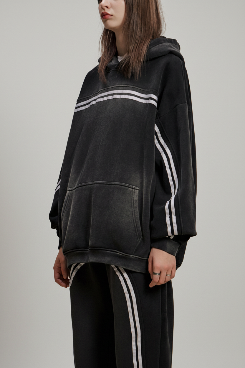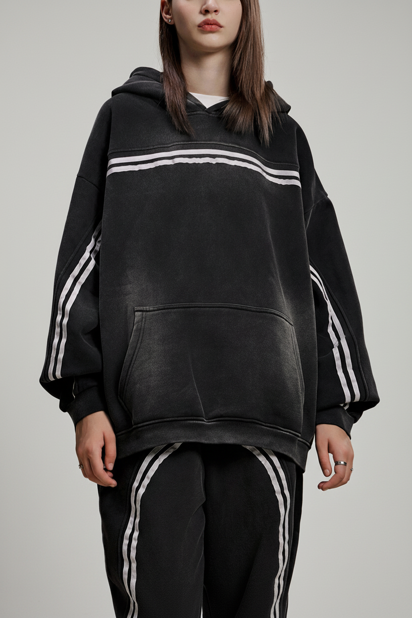 Elevated comfort meets minimal luxury. This sun-faded fleece tracksuit features contrast tape detailing and a relaxed fit that moves with you. Crafted for those who value quality over hype.