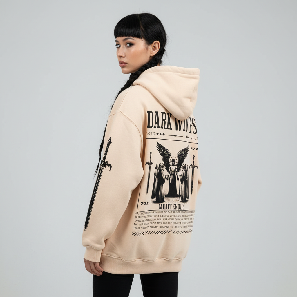 Embrace the shadows. The Dark Wings Boxy Hoodie merges gothic mystique with contemporary streetwear in a premium oversized silhouette.