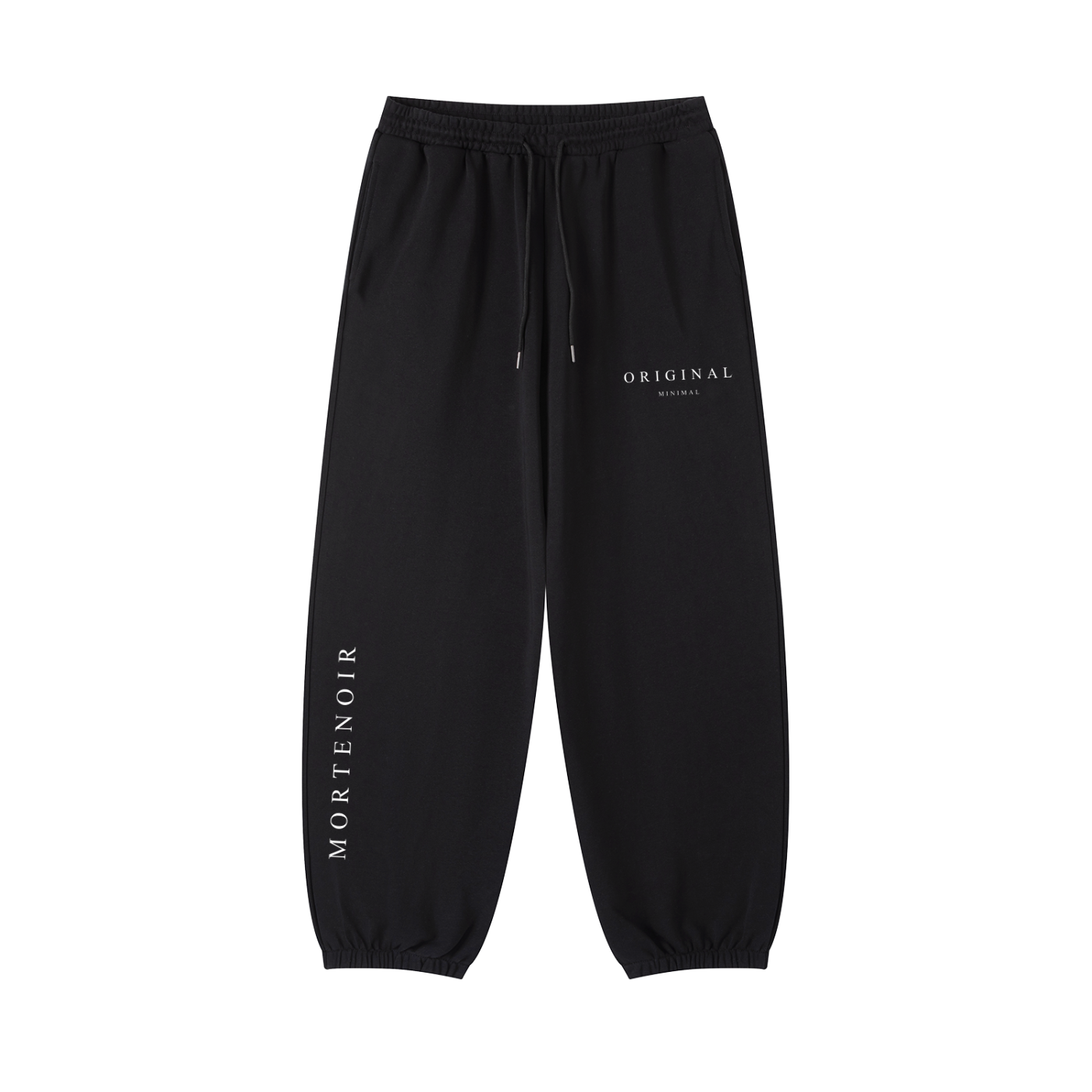 - Vertical 'MORTENOIR' text down left leg for bold statement styling