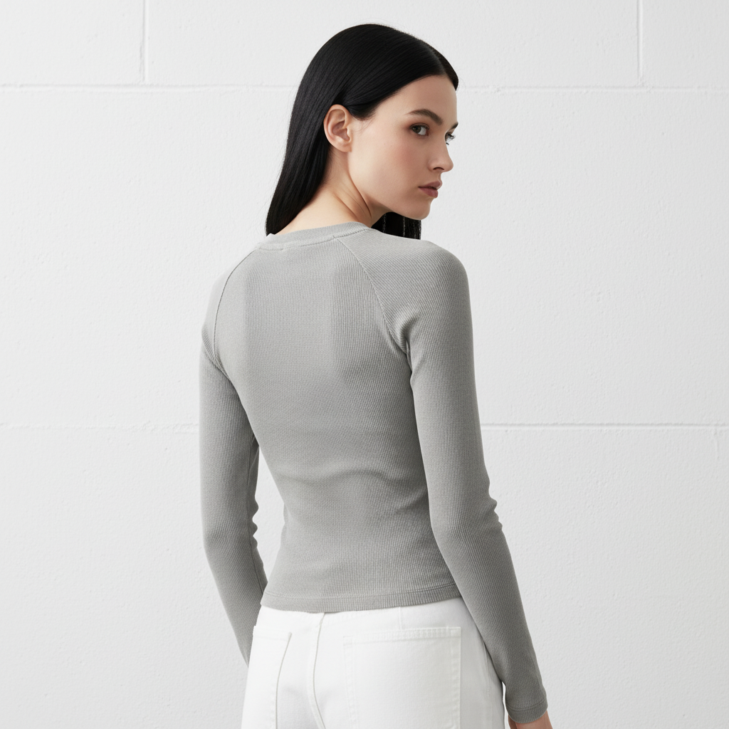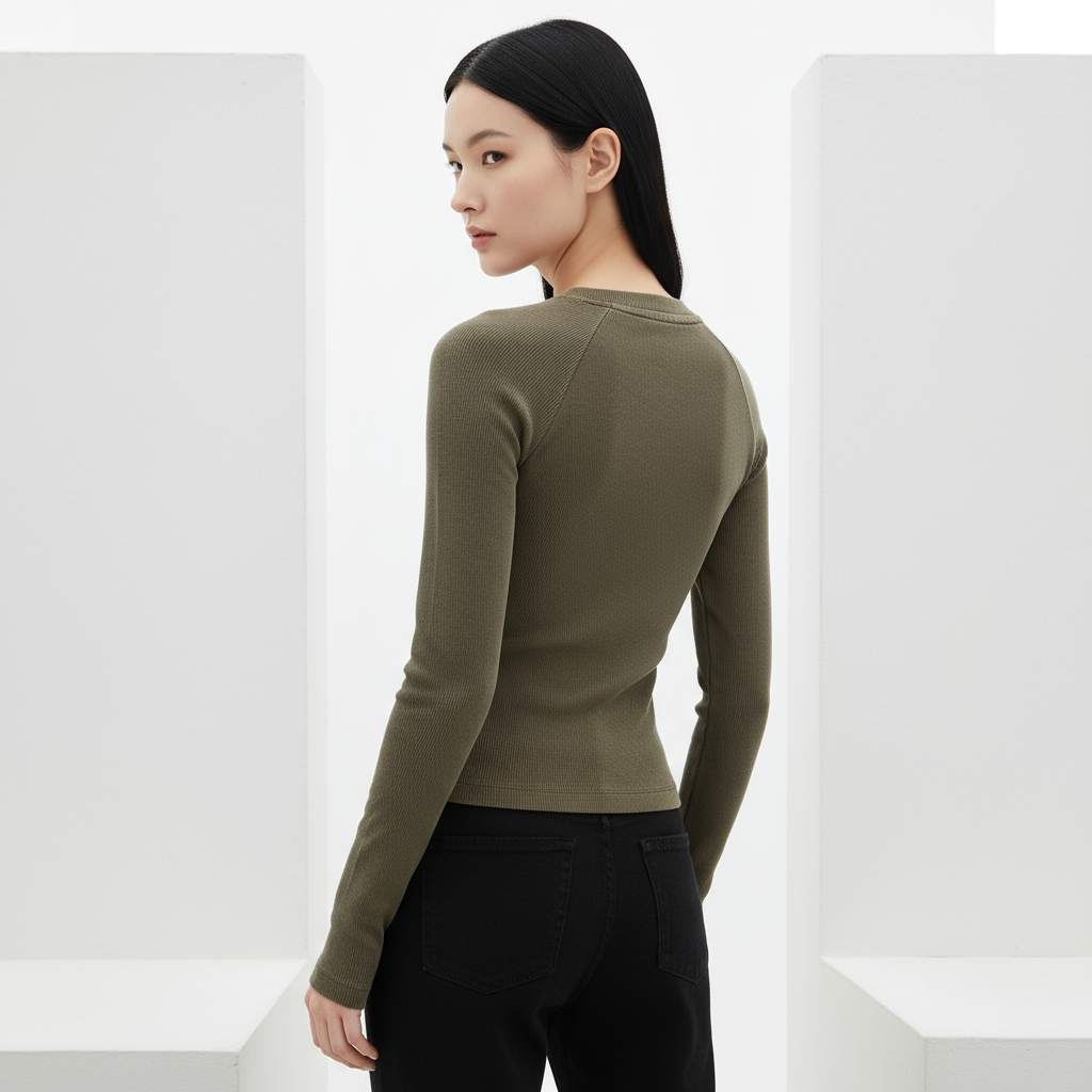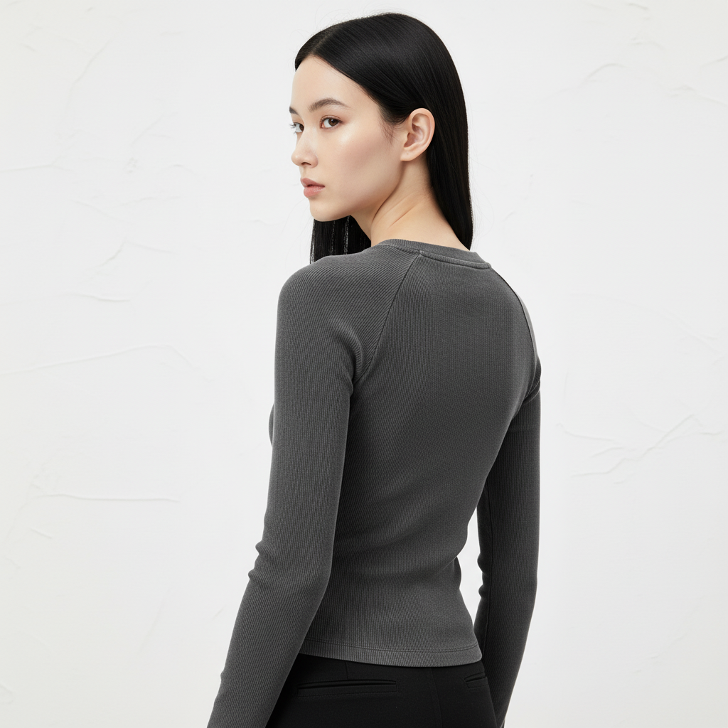 Dyed Washed Raglan Long Sleeve Slim T-Shirt Back View