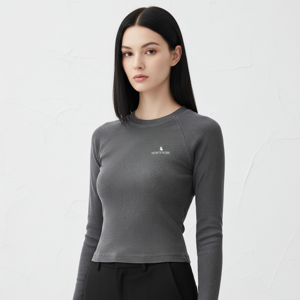 Dyed Washed Raglan Long Sleeve Slim T-Shirt