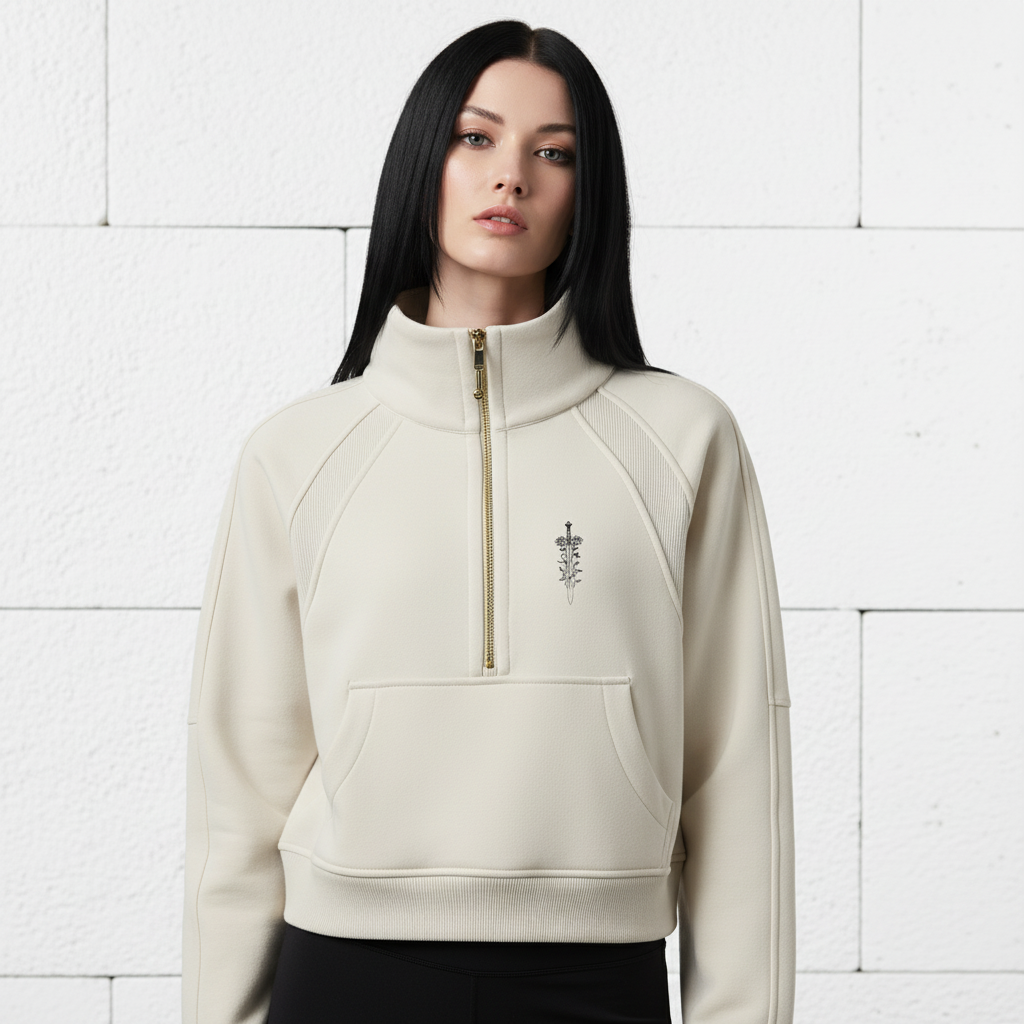 Ethereal Cropped Half-Zip Sweatshirt - Elegant Womens Jacket