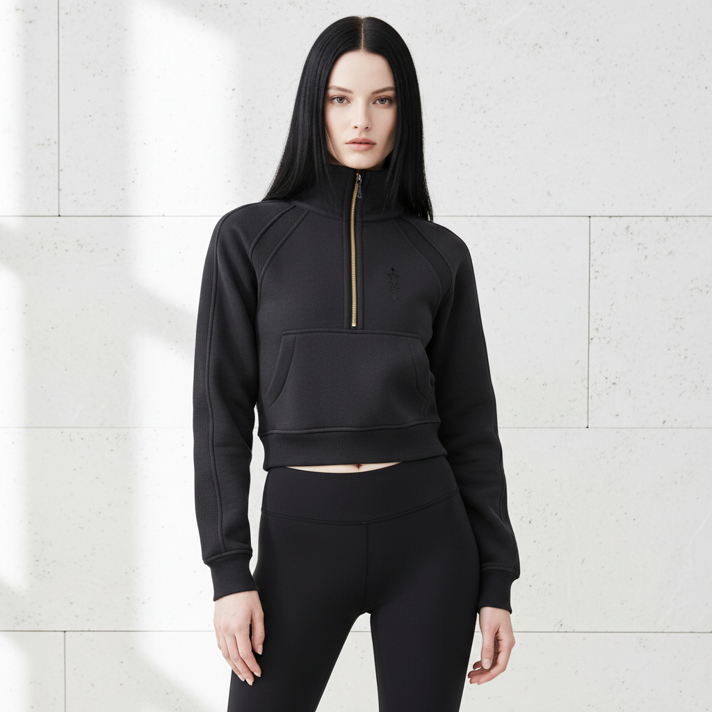• Half-Zip Detail: Functional zipper closure for versatile styling