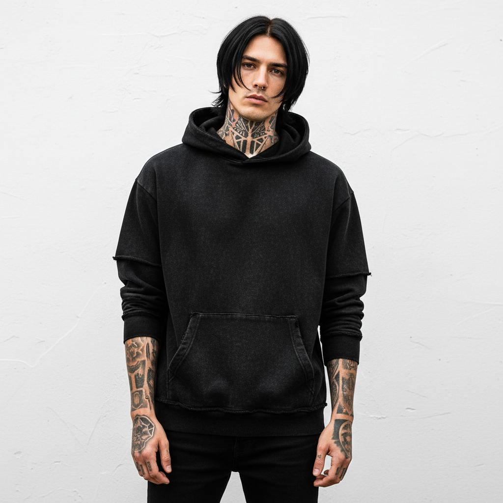 MorteNoir Snow Washed Raw Edge Double Layered Hoodie