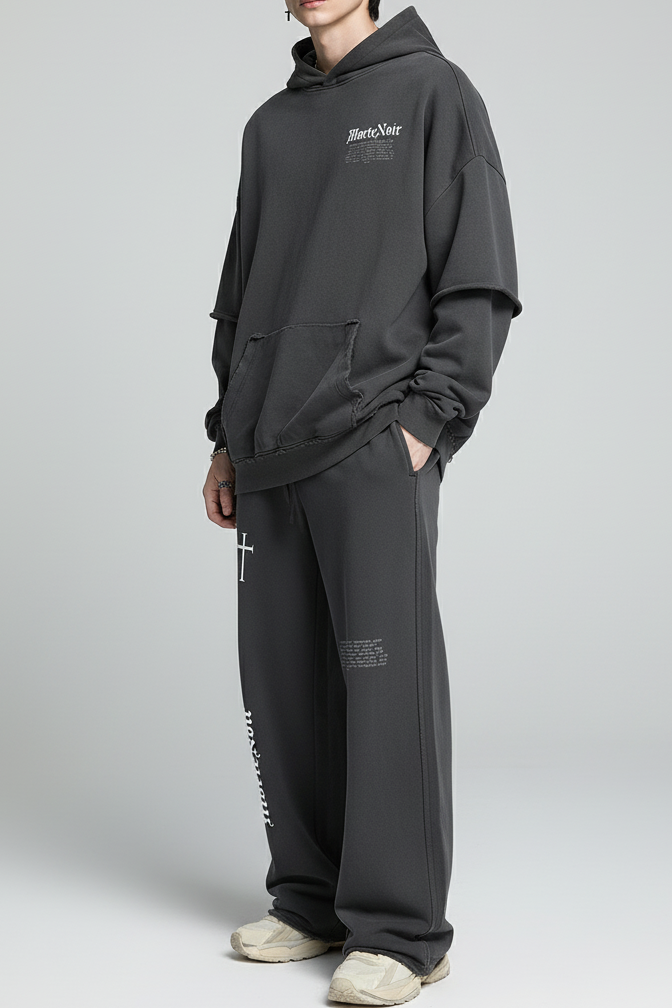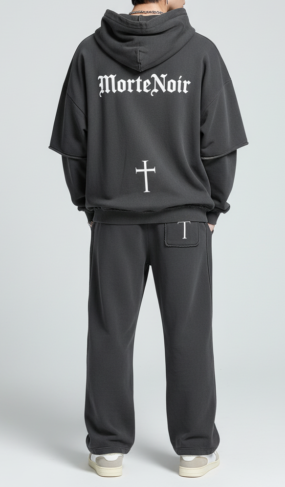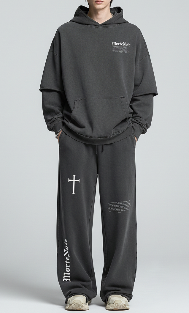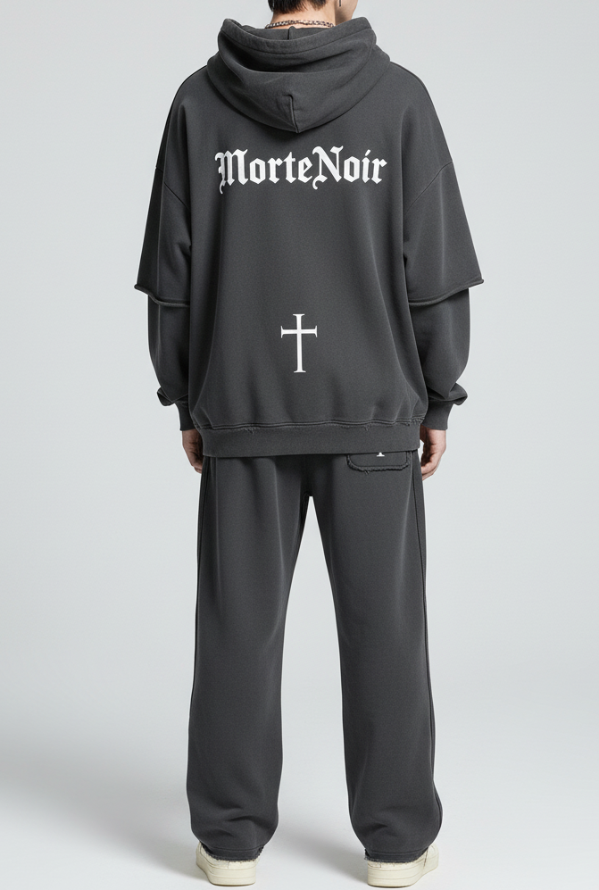 Embrace the dark aesthetic with this snow-washed raw edge double-layered hoodie. Crafted from heavyweight 100% cotton with distressed detailing and exposed seams, this oversized unisex piece delivers authentic grunge vibes. The unique snow wash treatment creates a lived-in, vintage look while the double-layer construction adds depth and dimension. Perfect for layering in your gothic streetwear rotation.